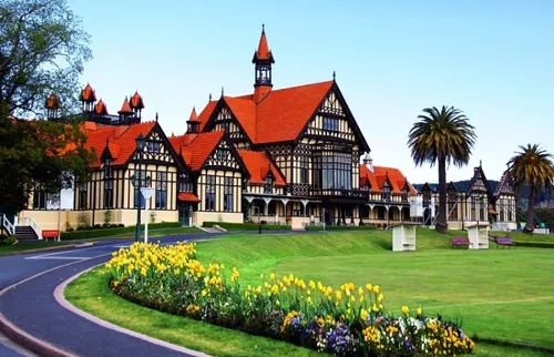 罗托鲁阿是新西兰北岛中北部一座工业城市,罗托鲁阿市坐落在火山多发区,被喻为"火山上的城市"。